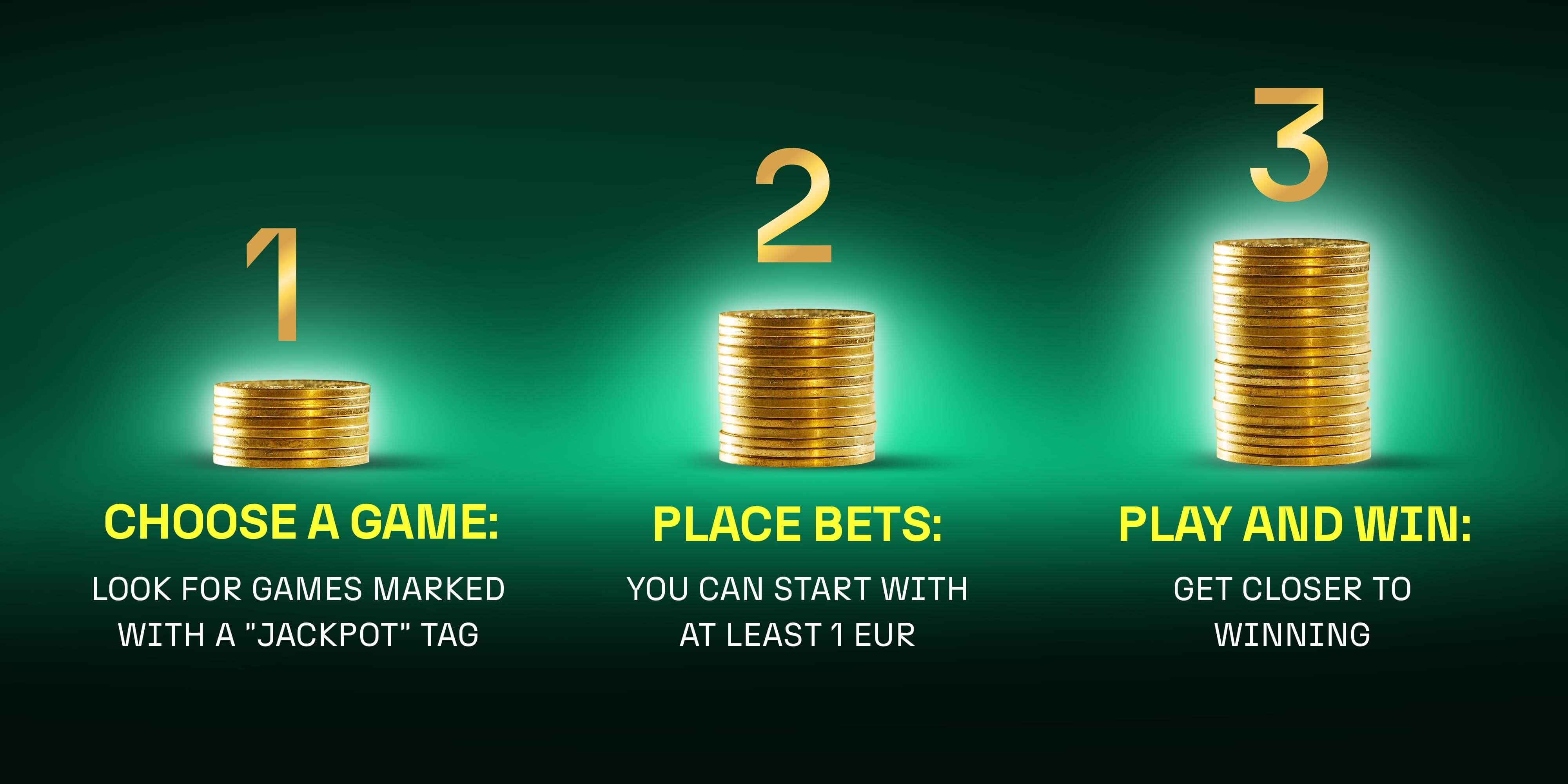 Play the games with the tag ‘Jackpot Games’ and make bets starting from 1 EUR (or equivalents in other fiat, crypto currencies). No extra money is charged for the participation. Once you make a qualifying bet, you participate automatically. The prizes are awarded in real time as real money, no wagering requirement. Each next bet can be winning!